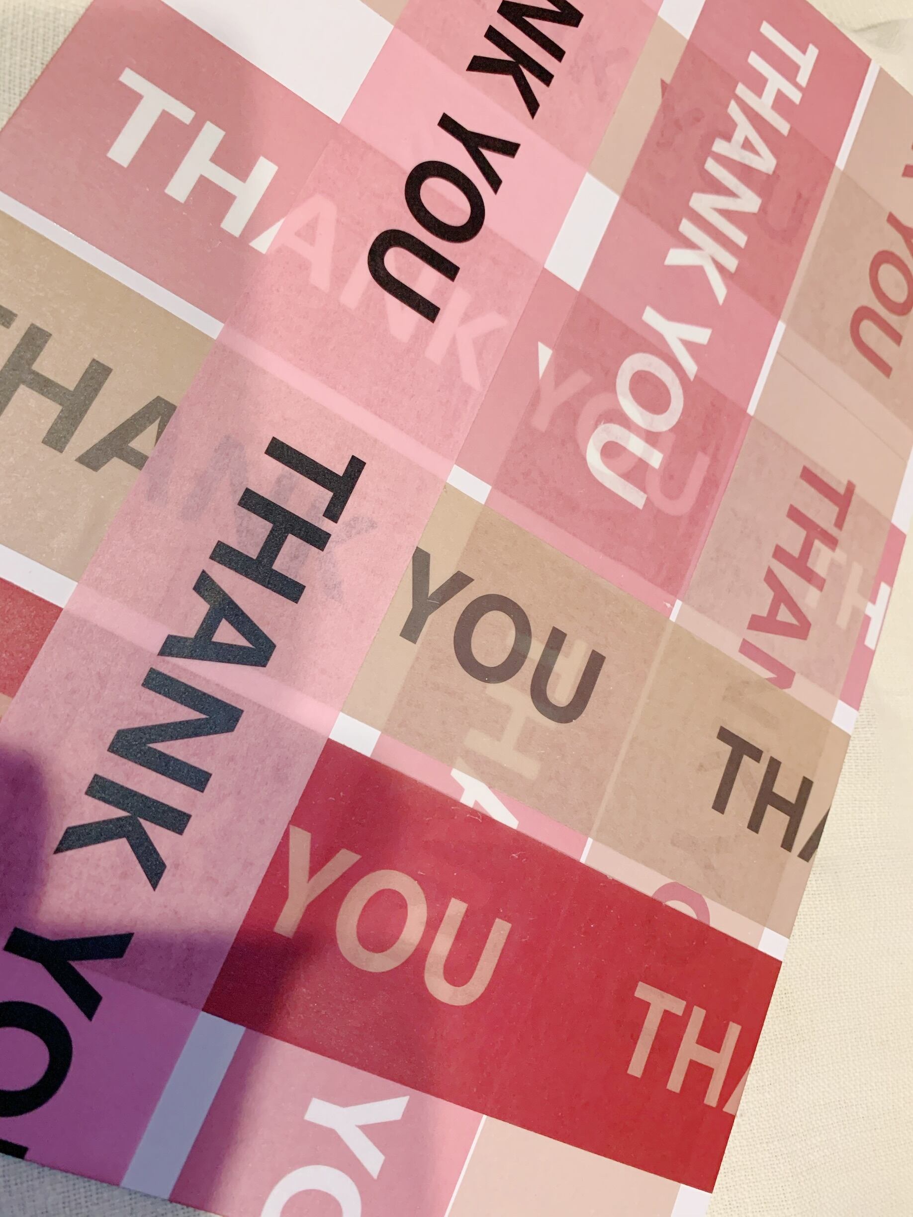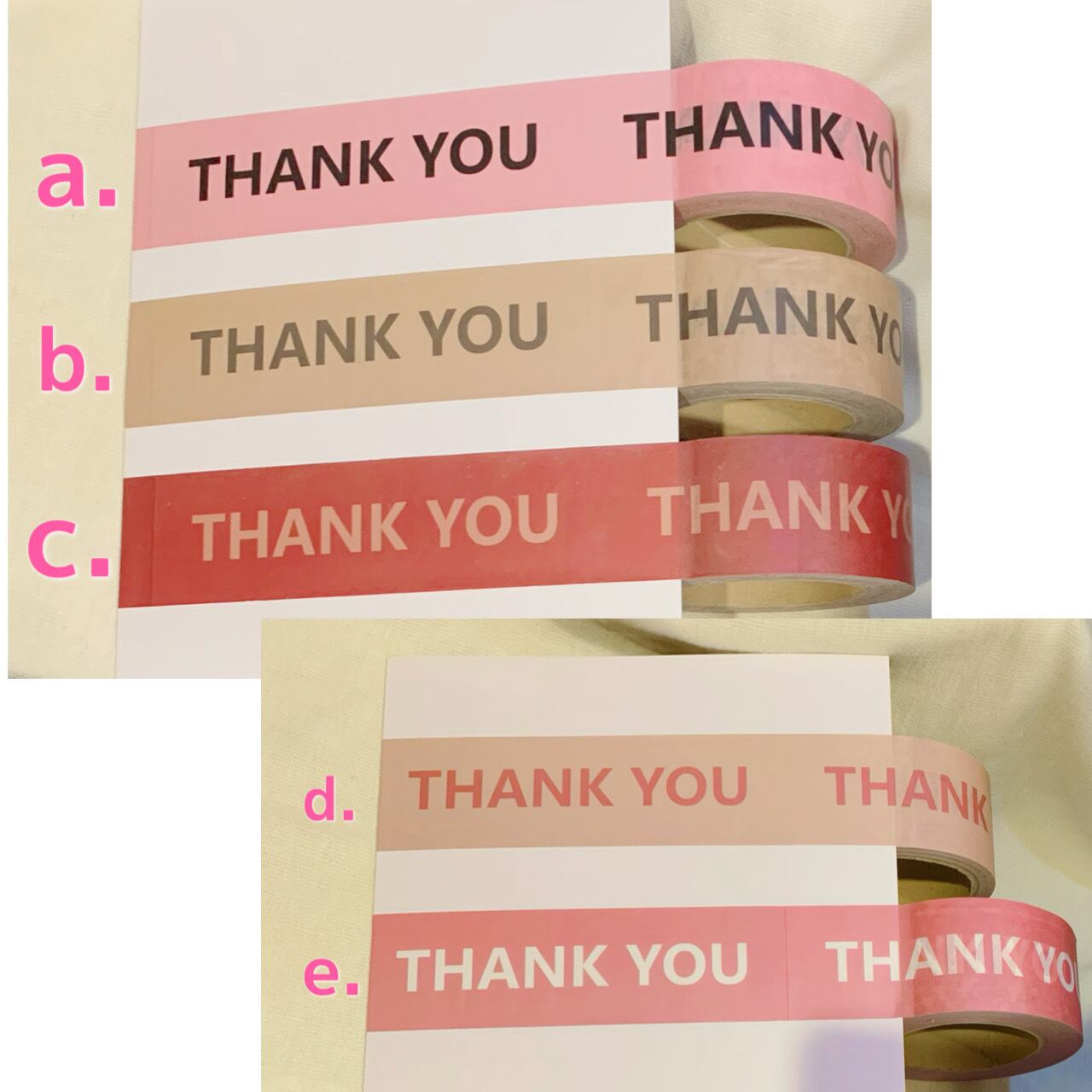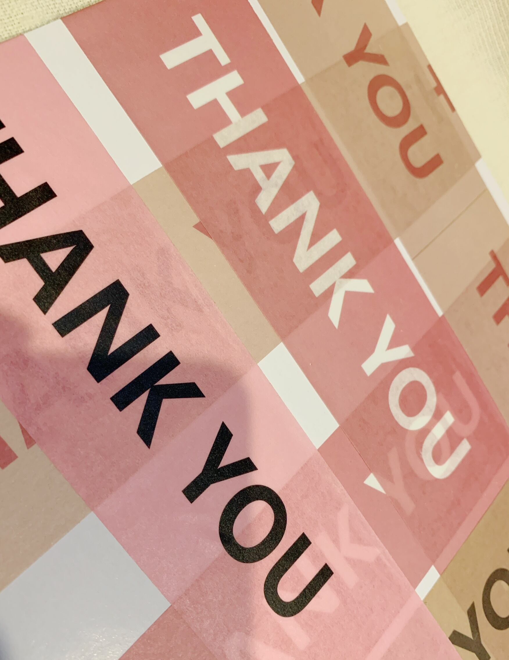 e.大人しめのピンク地に白でTHANK YOU